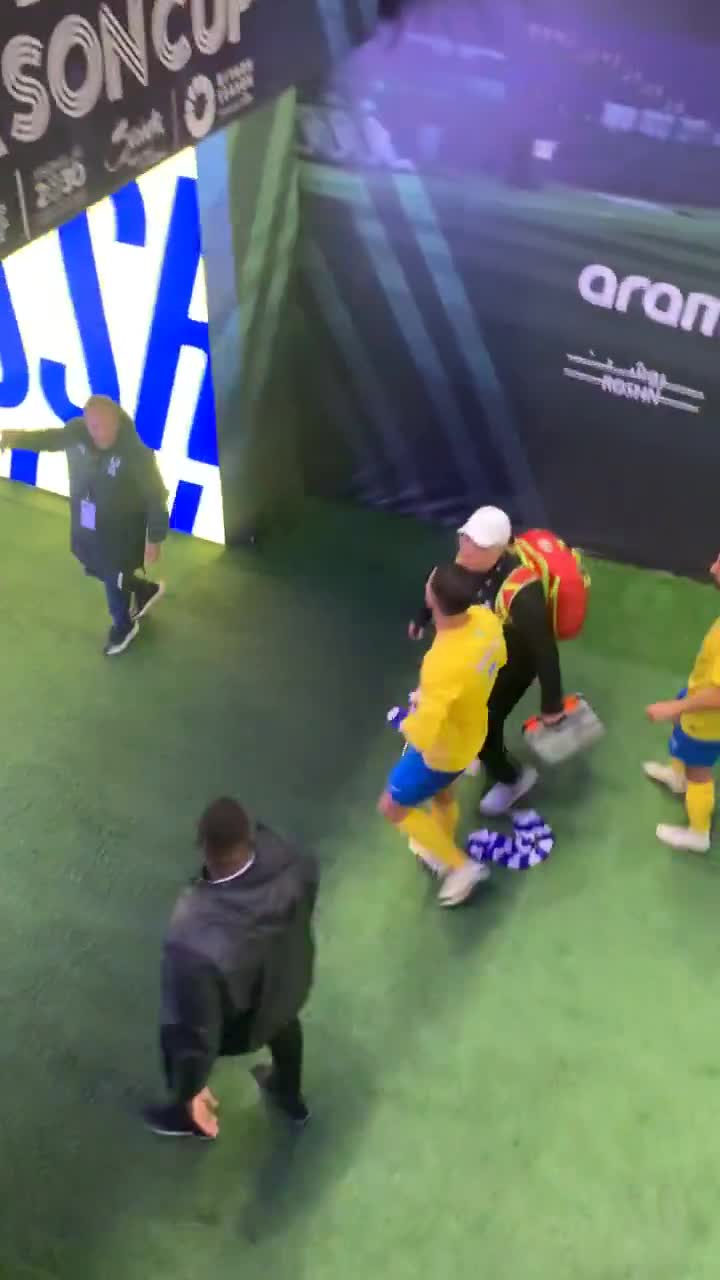 Cristiano Ronaldo, kendisine atılan Al Hilal formasını önce şortunun içine soktu, sonra tekrar tribüne fırlattı.