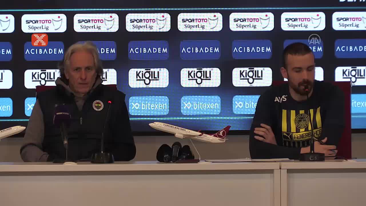 Spor Toto Süper Lig'in 32. haftasında deplasmanda Demir Grup Sivasspor'u 3-1 yenen Fenerbahçe'de teknik direktör Jorge Jesus, galibiyetten dolayı takı...