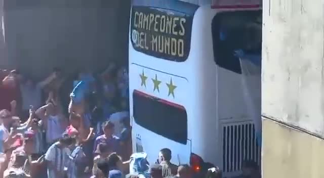Arjantinli taraftarlar, çılgın kutlamada üst geçitten takım otobüsüne atlamayı başardılar.