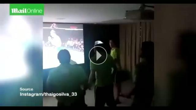 Brezilyalı futbolcular David Luiz ve Julio Cesar, dev ekranda izledikleri boks maçında heyecanlı bir şekilde ekrana yumruk attı...Yorumlar