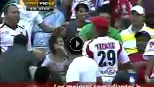 Güney Amerika'da oynanan bir futbol maçında trübünde taraftarlar arasında kavga çıktı. Erkek taraftar bayan taraftara öyle bir tokat attı ki ortalık birbirine girdi.Yorumlar