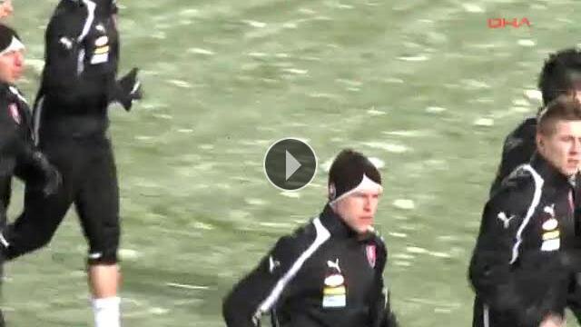 Slovakya Milli Takımı'nın, Bursa Atatürk Stadı'nda gerçekleştirdiği antrenman öncesinde yağan kar, saha zeminini kapattı.