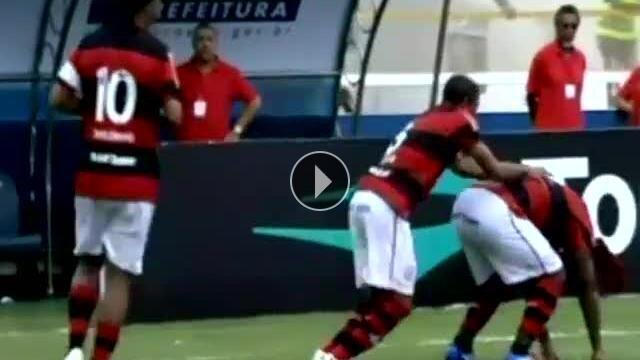 Brezilya'da Flamengo ile Bangu'nun karşı karşıya geldiği karşılaşmada Flamengolu oyuncular gole böyle sevindi.