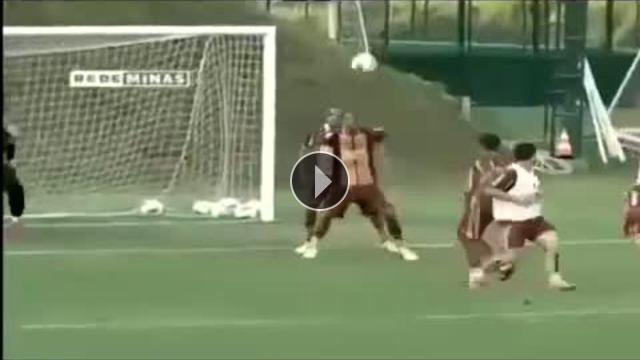 Brezilyalı yıldız futbolcu Ronaldinho, Atletico Mineiro antrenmanında mükemmel bir gole imza attı.