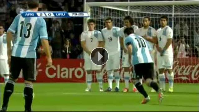 2014 Dünya Kupası Güney Amerika Elemeleri'nde Uruguay'ı konuk eden Arjantin'de Lionel Messi yine fark yaratan isim oldu. Messi 80. dakika da kullandığı akıl dolu frikiği ile hem Uruguay barajını hem de kaleci Fernando Muslera'yı avladı.Yorumlar