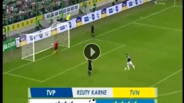 Polonya'da iki TV kanalı arasında organize edilen yardım maçında atılan bir penaltı izleyenleri şaşkına çevirdi.
