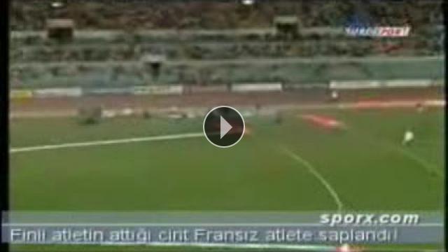 İtalya?nın başkenti Roma?da yapılan Golden League Atletizm yarışlarında üzücü bir olay yaşandı. Finli atlet Tero Pitkamaki?nin attığı cirit, saha dışına çıkarak uzun atlama mücadelesi için hazırlanan Fransız Salim Sdiri?nin sırtına saplandı.Yorumlar