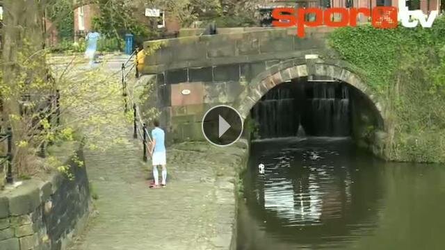 Manchester City'nin Bosnalı yıldızı Edin Dzeko, fotoğraf çekimi için gidilen kanalda istenilen vuruşu ilk seferde yaparak yeteneğini gösterdi.