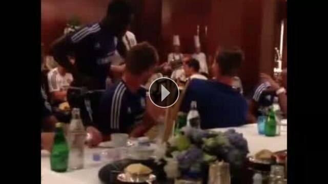 Chelsea'nin Ganalı orta sahası Michael Essien, takım yemeğinde tek başına dans etti.