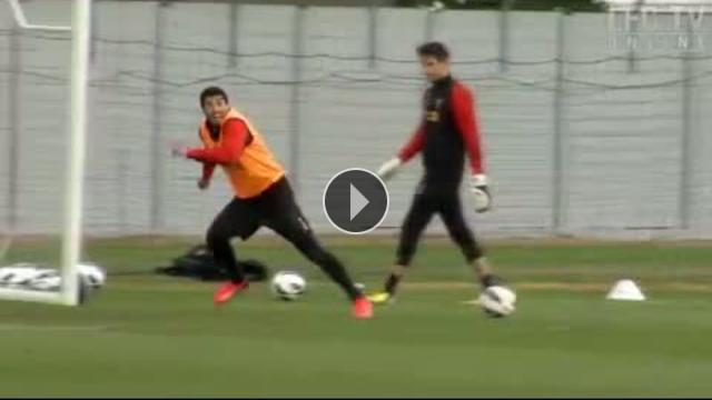 Liverpool'un Uruguaylı yıldızı Luis Suarez, antrenmanda kaleye geçti ve kalecilik hünerlerini sergiledi.