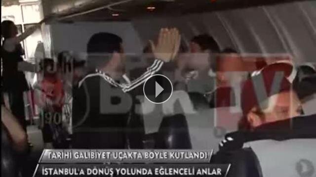 Beşiktaşlı futbolcular galibiyeti uçakta kutladı!...