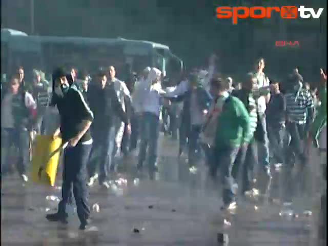 Spor Toto Süper Lig'de bugün Bursa'da oynanacak Bursaspor - Beşiktaş maçı öncesi olaylar çıktı. Siyah-beyazlı tarafarların giriş yapacağı noktada toplanan Bursaspor taraftarları, kendilerini bulundukları yerden uzaklaştırmaya çalışan emniyet güçlerine taş ve sopalarla karşılık verdi. Polis de taraftarlara panzerlerle müdahale etti. Gelişmeler Sporx TV'de olacak...