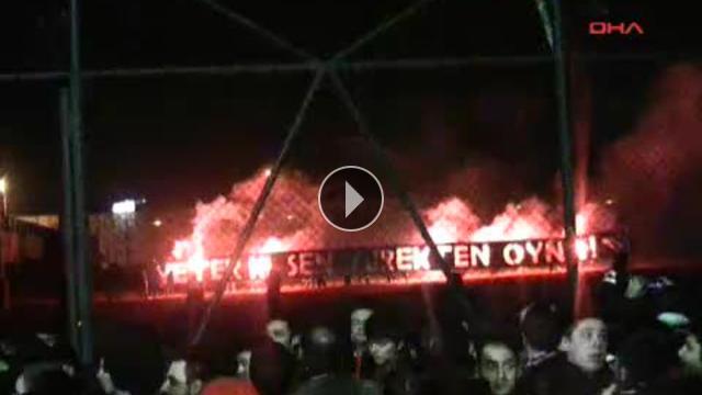 Eskişehirsporlu taraftarlar, Mersin İdmanyurdu maçı öncesinde tesislere giderek takımlarında destek verdi.