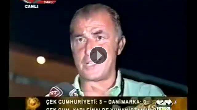 Galatasaray Teknik Direktörü Fatih Terim, EURO 2004 Çeyrek Finali'nde Çek Cumhuriyeti'nin Danimarka'yı 3-0 yendiği maçın ardından hafif bir canlı yayın kazası geçiren TRT spikerlerine yardım ederken ilginç dakikalarda yaşandı.Yorumlar
