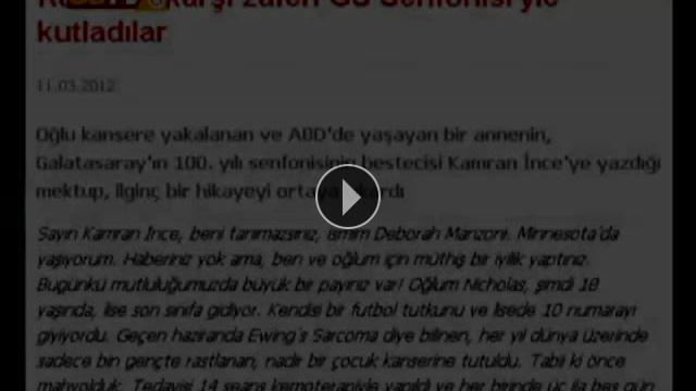 Oğlu kansere yakalanan ve ABD'de yaşayan bir annenin, Galatasaray'ın 100. yılı senfonisinin bestecisi Kamran İnce'ye yazdığı mektup...Yorumlar