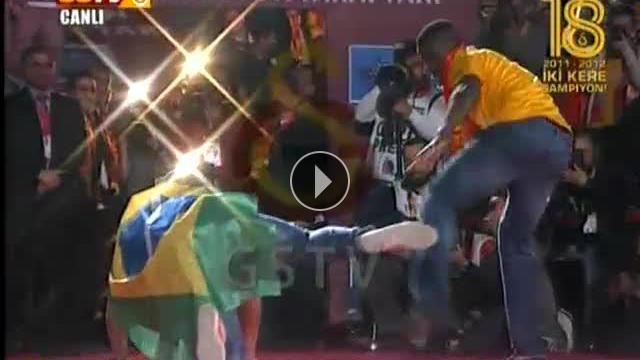 Galatasaray'ın şampiyonluk kutlamasında platforma çağrılma sırası Felipe Melo'ya geldiğinde tribünler ve Melo kendinden geçti