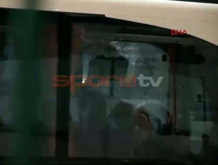 Fenerbahçe'nin Trabzon Avni Aker Stadyumu'na girerken taşlı saldırıya maruz kalmasının ardından takım otobüsünün camları kırıldı...