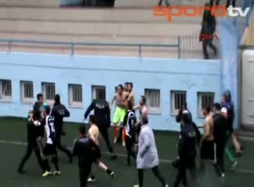 Trabzon 1. Amatör Küme'de oynanan karşılaşmanın ardından futbolcularla polisler arasında arbede çıktı. Polislere tekme ve yumruk atan futbolculardan 5...