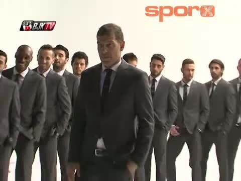 Beşiktaş futbol takımı oyuncuları ve teknik ekibi, sponsorları olan bir giyim firmasının düzenlediği yılbaşı kartpostal çekimi için kamera karşısına g...