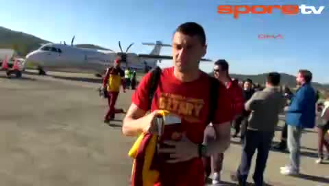 Spor Toto Süper Lig'de yarın Karabükspor ile deplasmanda karşılaşacak olan Galatasaray, uçakla geldiği Zonguldak Çaycuma Havalimanı'nda taraftarlarlar...