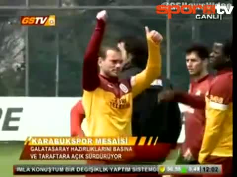 Galatasaray, Spor Toto Süper Lig'in 29. haftasında karşılaşacağı Kardemir Karabükspor maçının hazırlıklarını sürdürürken Eboue ile Sneijder'in şakalaş...