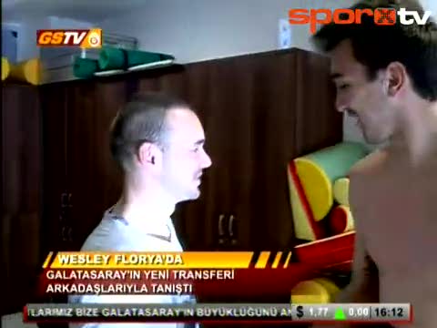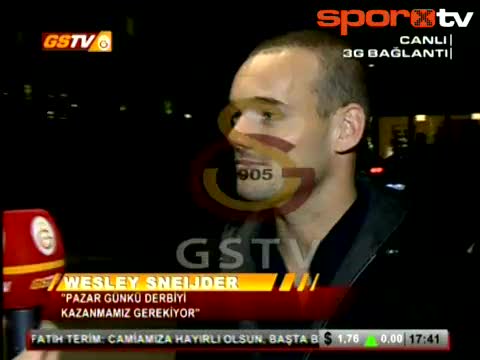 Galatasaray'ın yeni transferi Wesley Sneijder kalacağı otelin girişinde GS TV mikrofonlarının sorularını yanıtladı.