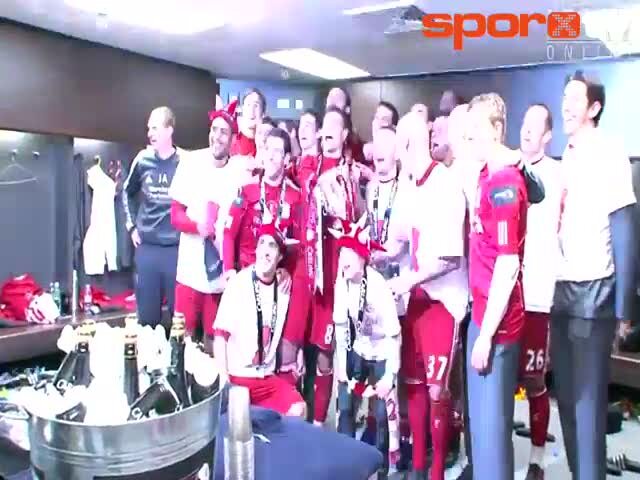 İngiltere Lig Kupası'nı Cardiff'i penaltılar sonucu mağlup eden Liverpool kazanırken oyuncular soyunma odasında işte böyle kutladılar.