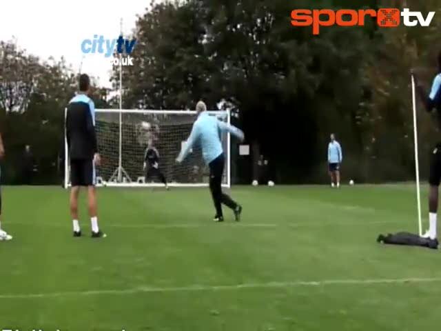 2008-2009 sezonunda Manchester City'nin teknik direktörlüğünü yapan Mark Hughes antrenman sırasında gelen ortaya öyle bir vole vurmuş ki, kalede bulun...