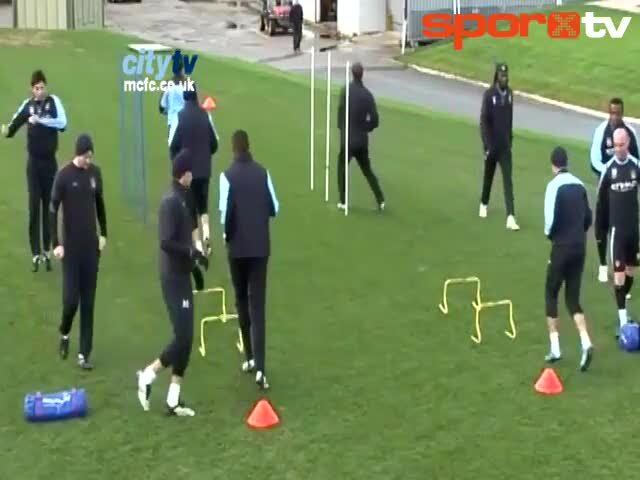 Manchester City antrenmanını kayıt eden City TV'nin kameralarına komik bir an yansıdı. Antrenmanda geri geri koşu yapan Vincent Kompany yerde duran mi...