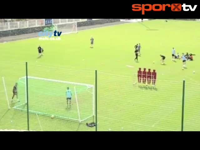 Manchester City'nin başarılı ismi Shaun Wright-Phillips, antrenmanda kaleye geçti ve direten dönen toptan çıkan sese verdiği tepki ile herkesi kahkaha...