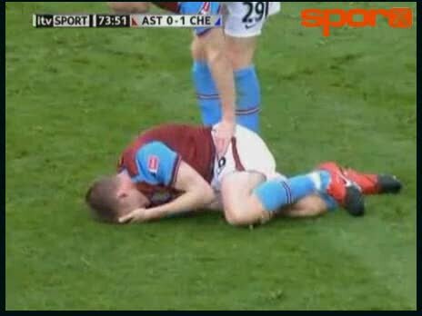 Hafta sonu oynanan FA Kupası yarı final karşılaşmasında Chelsea kaptanı John Terry bir pozisyonda Aston Villa'lı futbolcu James Milner'a çok sert bir ...