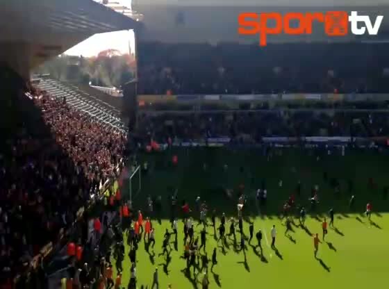 İngiltere 1.Lig'de şampiyonluğa koşan Wolves takımının taraftarları kazanılan maç sonrasında sahaya daldı...