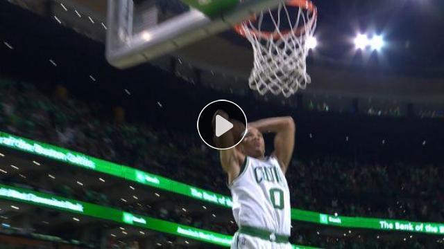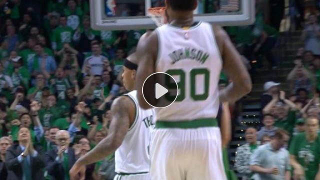 Celtics top kaybına zorluyor, Jaylen Brown topu kurtarıp Avery Bradley'ye paslıyor ve Bradley de smaçla tamamlıyor.