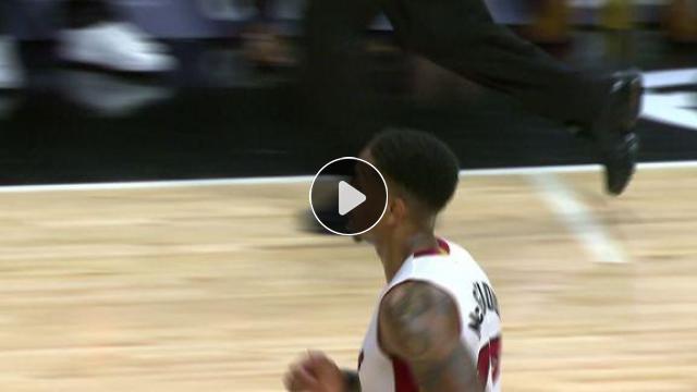 Goran Dragic topu çalıyor ve hızlı hücumda Rodney McGruder'a smacı için pası veriyor.