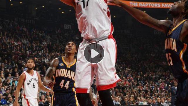 Jonas Valanciunas önce fake'i veriyor ve Myles Turner'ı havada yakaladıktan sonra içeri girip smacı vuruyor!