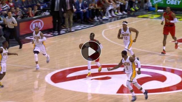Dennis Schröder topu çalarak hızlı hücumda topu Tim Hardaway Jr.'a smacı için gönderiyor.