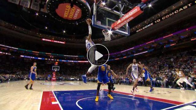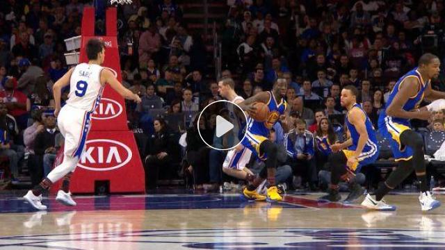 Draymond Green topu çalarak hızlı hücuma çıkan Kevin Durant'e yolluyor ve Durant de smacı basıyor.