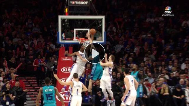 Cody Zeller smacı vurmaya gidecekken, çemberde kendisini Joel Embiid karşılıyor!