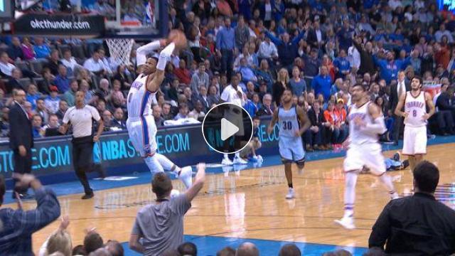 Russell Westbrook Memphis'in kenardan oyuna sokmaya çalıştığı topu çalarak öbür tarafta smacı vuruyor!