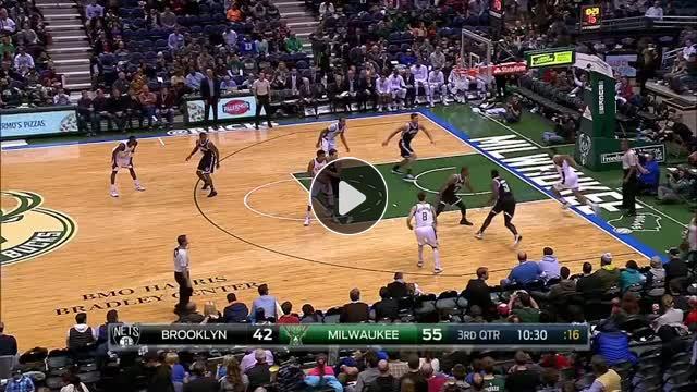 Giannis Antetokounmpo belinin arkasından verdiği pasla John Henson'ın smacı için yolu kuruyor.