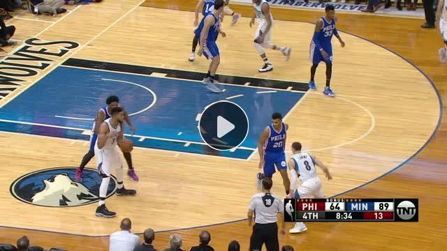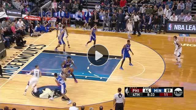 Karl-Anthony Towns önce savunmacısı Joel Embiid'i uçuruyor, sonra da içeri girip bu smacı vuruyor ve hem gecenin smacı, hem de gecenin hareketi kendis...