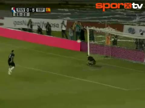 İspanya'nın hazırlık maçında Panama'yı 5-1 ile geçtiği maçın son dakikalarında penaltı vuruşu için topun başına geçen Gabriel Gomez, Panenka penaltısı...