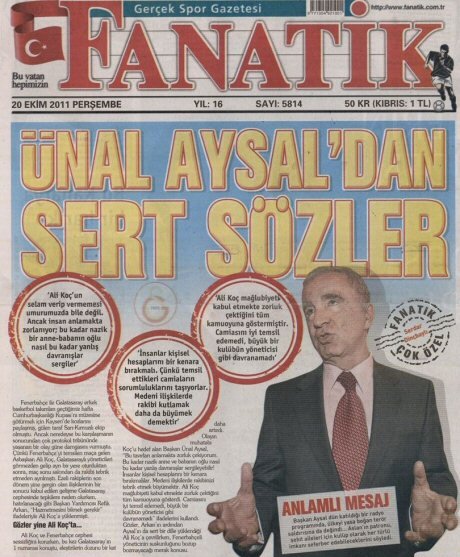 "Bugün Fanatik Gazetesi'nde “Ünal Aysal'dan Sert Sözler” başlıklı bir haber yayınlanmıştır. Başkanımız Ünal Aysal'ın adı geçen gazeteye ya da başka bir medya organına Sayın Ali Koç ile ilgili olarak bir beyanatı olmamıştır.