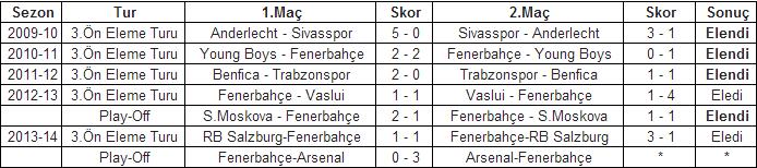2009-10 sezonunda Sivasspor, 2010-11 sezonunda Fenerbahçe ve 2011-12 sezonunda Trabzonspor ise 3.Ön Eleme turunda elenmişti. Trabzonspor, aynı sezon Fenerbahçe’nin yer alamaması nedeniyle gruplarda mücadele etmişti.