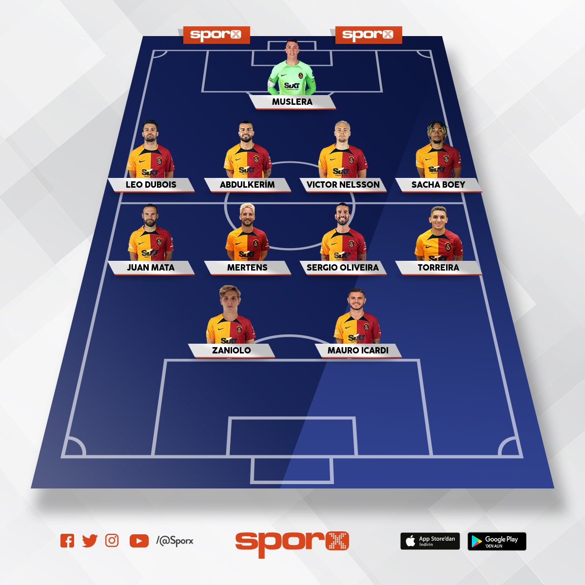 Galatasaray Abdulk,Jacob,Salai,Lemin,İlkay,Yunus,Barış,Icardi.